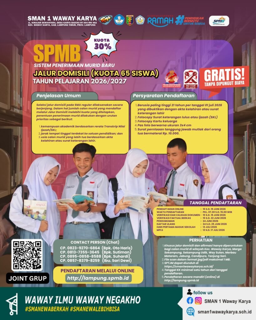 Mewujudkan SMA N 1 Waway Karya BERKAH, mencetak generasi unggul, berakhlak mulia, dan berkontribusi positif bagi masyarakat