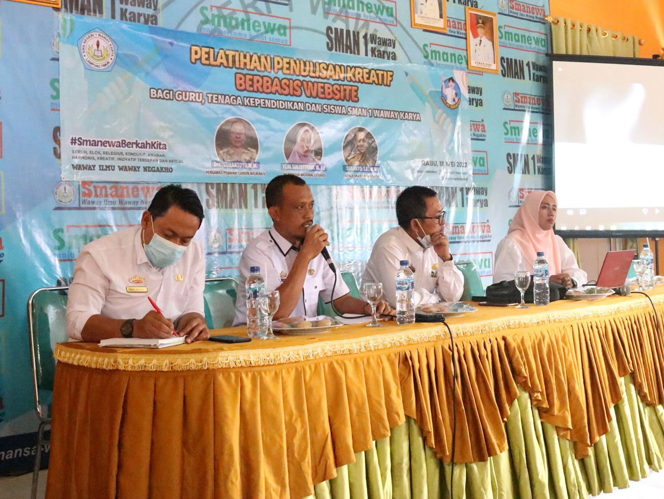 Kemampuan menulis menjadi salah satu aspek penting yang harus dikuasai dalam dunia pendidikan baik untuk tenaga pendidik maupun peserta didik. Oleh karena itu, sebagai bentuk peningkatan kompetensi dalam peningkatan kemampuan menulis, SMAN 1 Waway Karya menggelar Pelatihan Penulisan Kreatif Berbasis Website bagi guru, tenaga kependidikan dan siswa pada hari Rabu (18/5/2022).