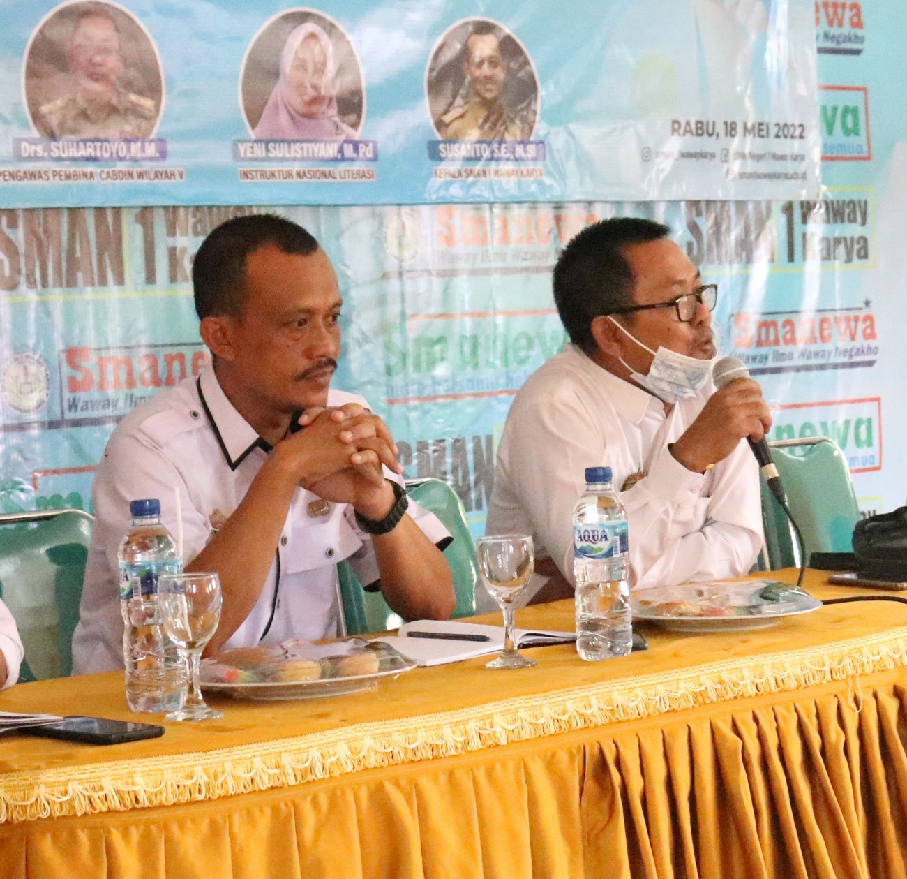 Acara tersebut di buka oleh Drs. Suhartoyo, M.M, Pengawas Pembina Cabdin Wilayah V. “SMAN 1 Waway Karya sangat luar biasa bisa menggelar acara semacam ini, terus bergegas maju untuk menunjukan taringnya di media dengan di buat wadah khusus berupa Website, sehingga karya karya penulis SMAN 1 Waway Karya bisa tersalurkan baik para penulis berita maupun para penulis cerpen dan lain sebagainya”, sambutnya sebelum membuka acara.